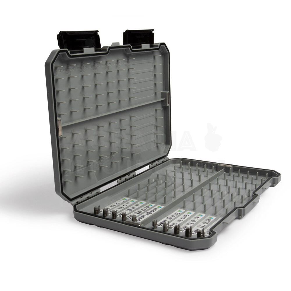 La scatola portafinali All-round hooklength box è ideale per stoccare grandi quantità di finali di lunghezze differenti, da 3 “(75mm) a 9″ (225mm).