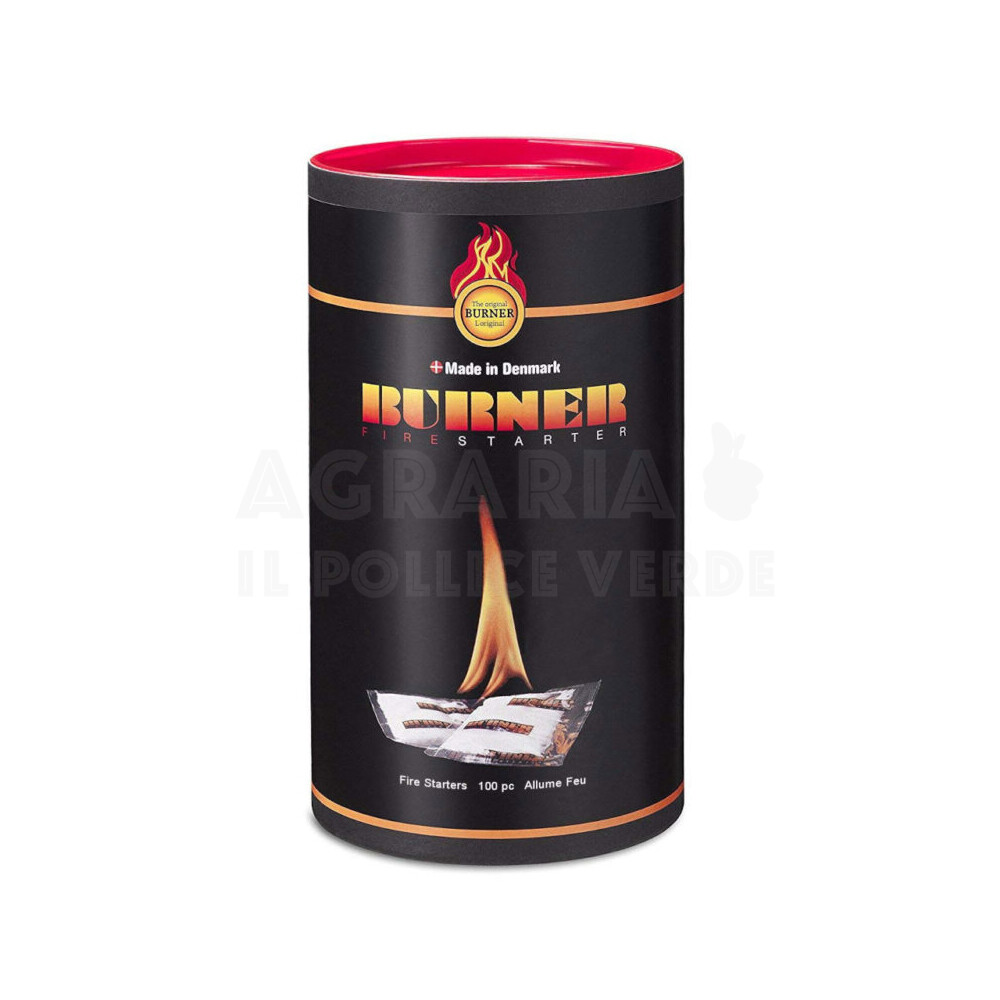 Burner accendifuoco naturale, pratiche bustine sigillate, in resina pronte per essere accese, contengono una miscela di olio biologico che permette un’accensione pulita e senza odore. Burner non inquina e non è tossico, ideale per il caminetto o la stufa di casa e per accendere la carbonella del tuo barbecue.