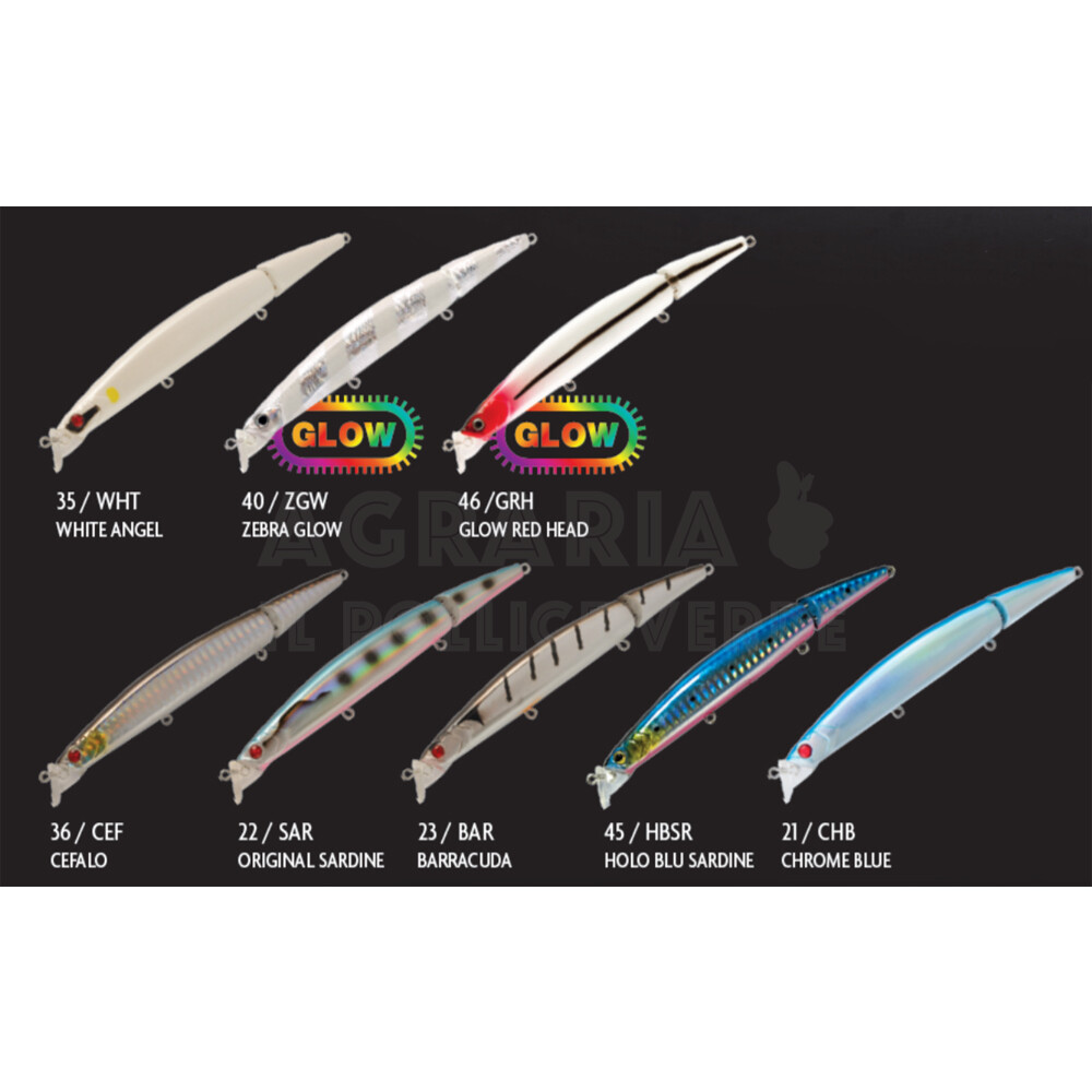 Un minnow snodato super aerodinamico che non perde l’assetto in fase di lancio sembrava un sogno ma adesso è realtà!!! Il Cuda J non fa rimpiangere i più consolidati minnow per il long cast grazie al suo snodo a V a doppia tenuta. Il suo nuoto, reso estremamente vivace grazie allo snodo, lo rende indicato per spigole, serra e soprattutto barracuda, da cui prende il nome.