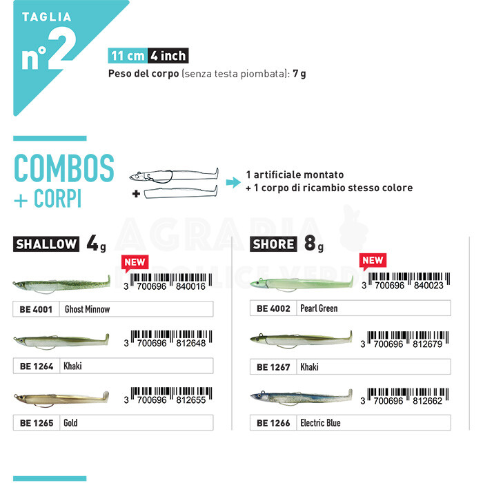 • Un amo compatibile con due diversi tipi di esche artificiali: la Black Minnow e la Black Eel.