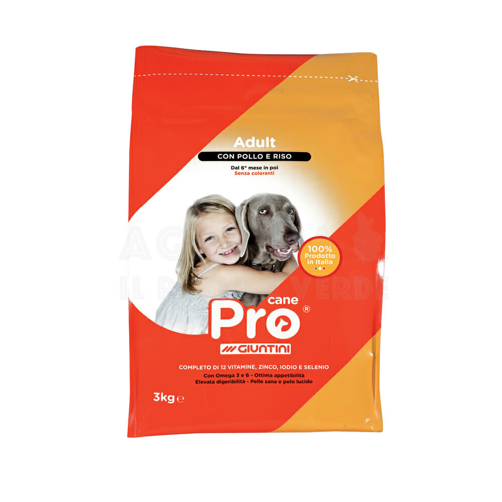 Pro cane Pollo e Riso è un alimento appetibile, completo ed equilibrato con le proteine del pollo, ideale per il mantenimento dei cani di qualsiasi razza a partire dal 6° mese di vita.