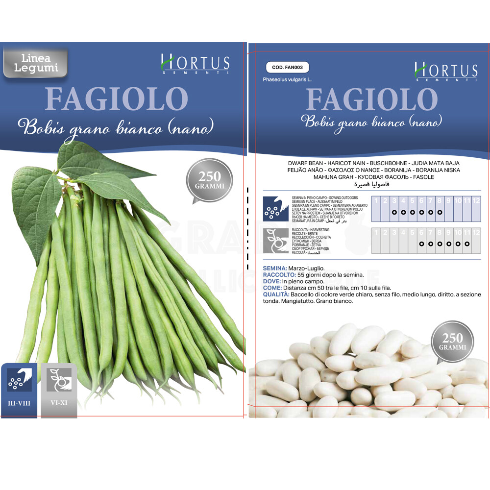 QUALITÀ: Baccello di colore verde chiaro, senza filo, medio lungo, diritto, a sezione tonda. Mangiatutto. Grano bianco.
