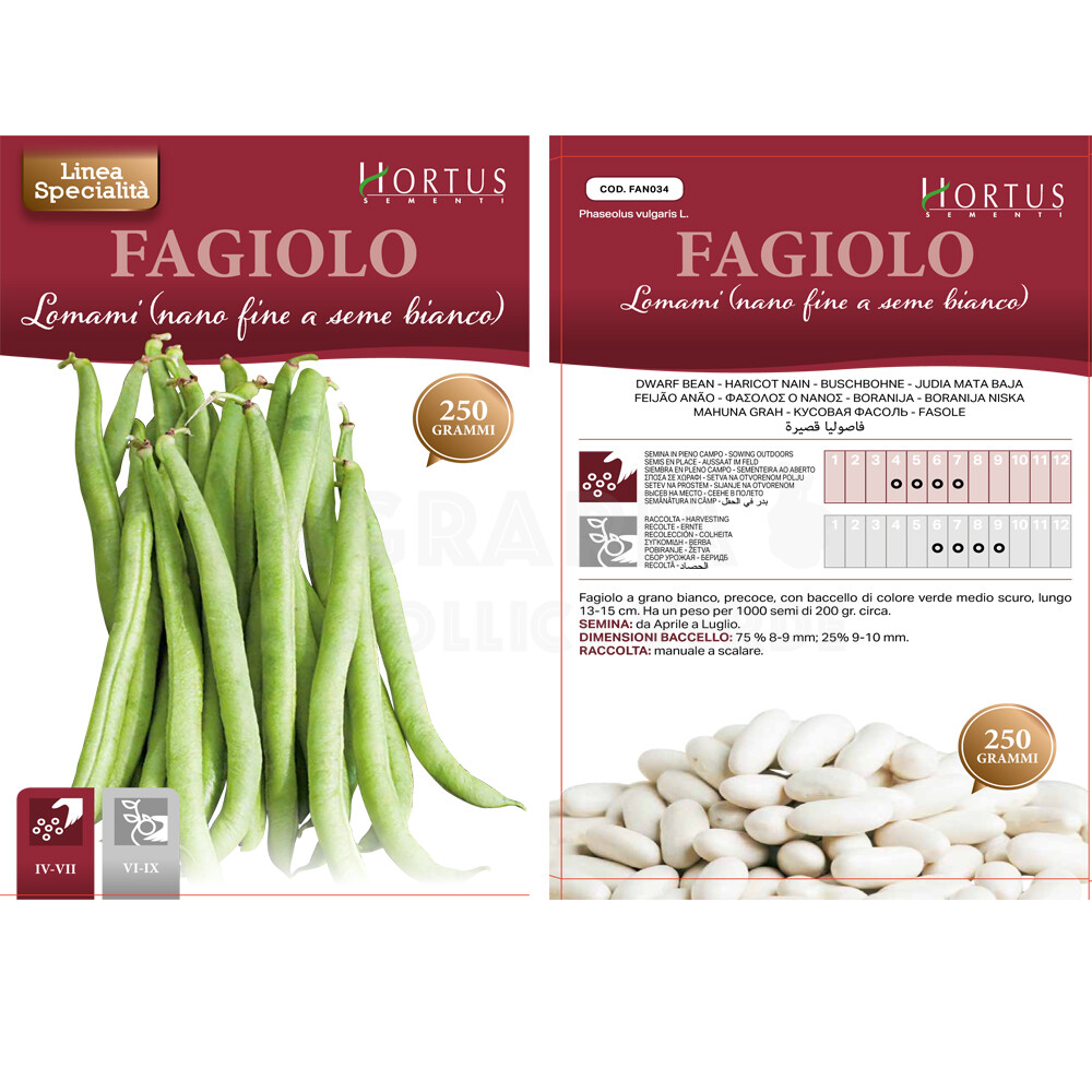 Fagiolo a grano bianco, precoce, con baccello di colore verde medio scuro, lungo