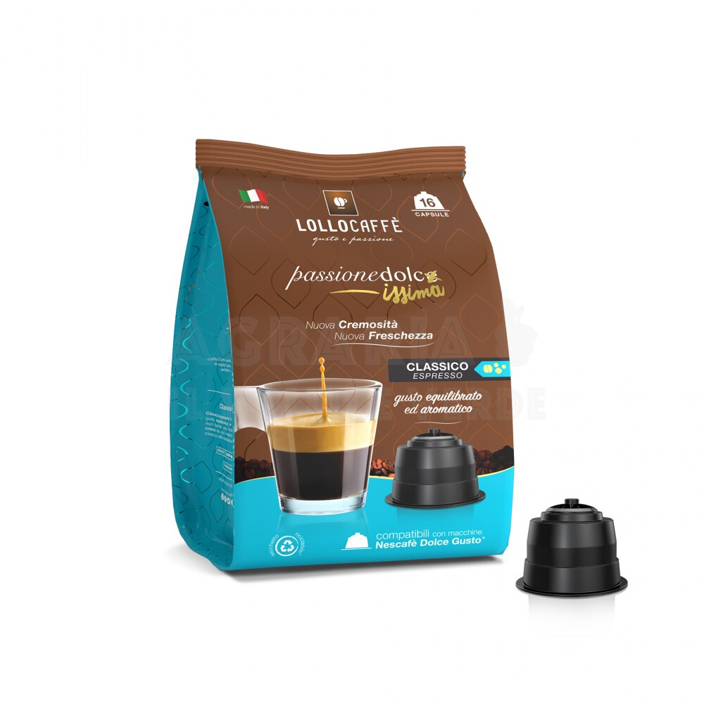 Capsula caffè contenente 7,5g di pregiate qualità di caffè torrefatto e macinato, compatibili con macchine Nescafè* Dolce Gusto*