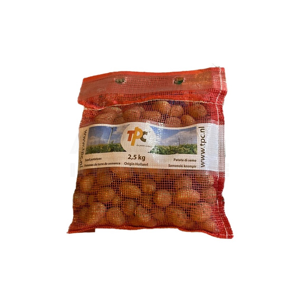 Patate da seme calibro 28/35 confezionate in sacchi da 2,5 Kg.