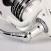 la meccanica e la componentistica hanno soddisfatto tutti con la qualità e la durata, anche a fronte di impieghi pesanti nella pesca in mare. Oggi il progetto si evolve, accogliendo una bobina fortemente innovativa, caratterizzata da un diametro sovradimensionato che porta numerosi vantaggi. Innanzitutto le spire di lenza sono ampie, con grandi benefici a livello di distanze di lancio; il bordo della bobina è più facilmente raggiungibile con il dito della mano che governa l’uscita della lenza nella preparazione del lancio e nella pesca in passata; lo spunto della frizione è più immediato, perché il braccio di leva esercitato dal filo sui dischi frenanti è più lungo.