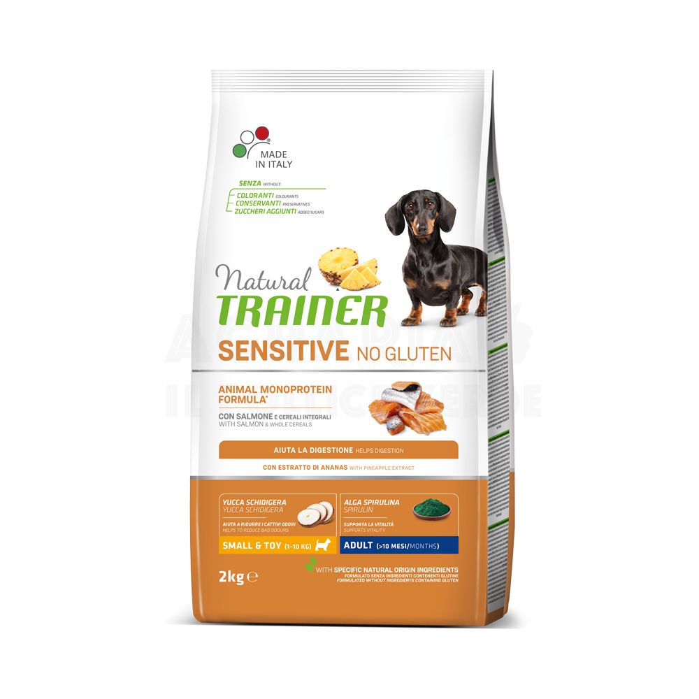 Mangime secco per cani adulti, monoproteico al salmone, particolarmente adatto a soggetti con intolleranze alimentari. No gluten