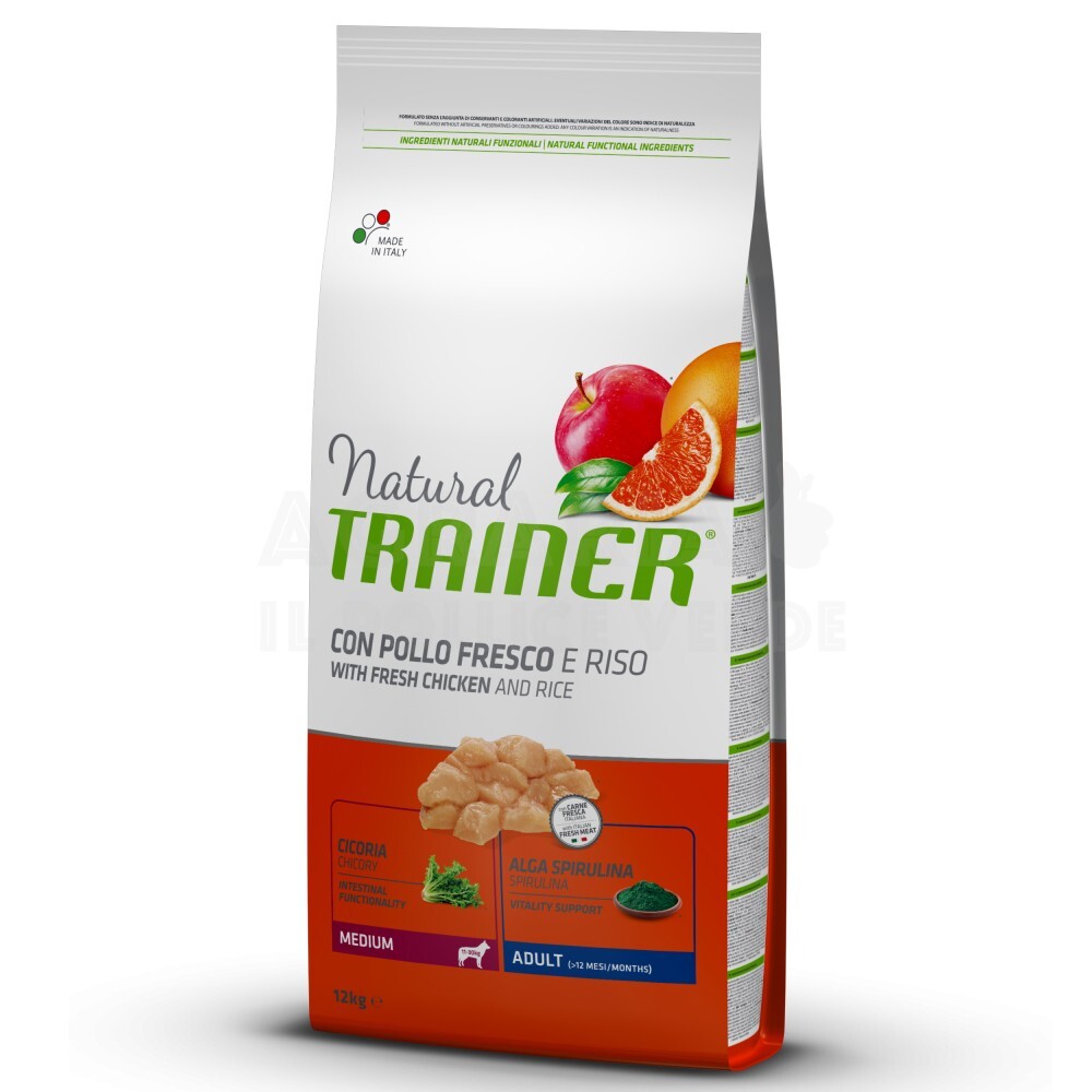 proteine di pollo e tacchino disidratate , granturco , fioretto di granturco , carne fresca di pollo e tacchino 10% (pollo 9%) , riso 10% , grassi animali , idrolizzato proteico animale , polpe di barbabietola , semi di lino , autolisato di lievito , sostanze minerali , proteine di pesce disidratate , fibra di pisello , MOS (mannano-oligosaccaridi) 0,3% , estratto secco di cicoria 0,3% , FOS (frutto-oligosaccaridi) 0,15% , peptidi bioattivi del collagene 0,06% , alga spirulina (Arthrospira platensis) 0,02% , estratto secco di frutta citrica (bioflavonoidi) 0,006% , estratto secco di mela 0,003%.