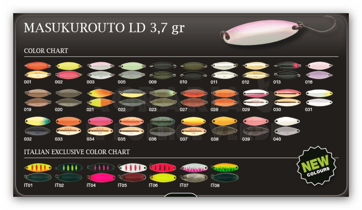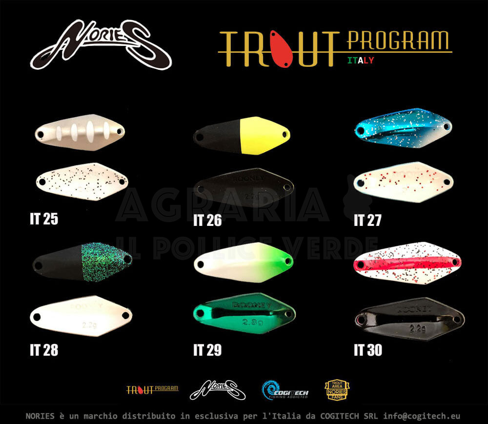 La tabella colori è vasta e si contraddistingue con la doppia colorazione differente per ogni lato dello Spoon. Questo accresce le caratteristiche adescanti di questo micidiale Trout Killer.
