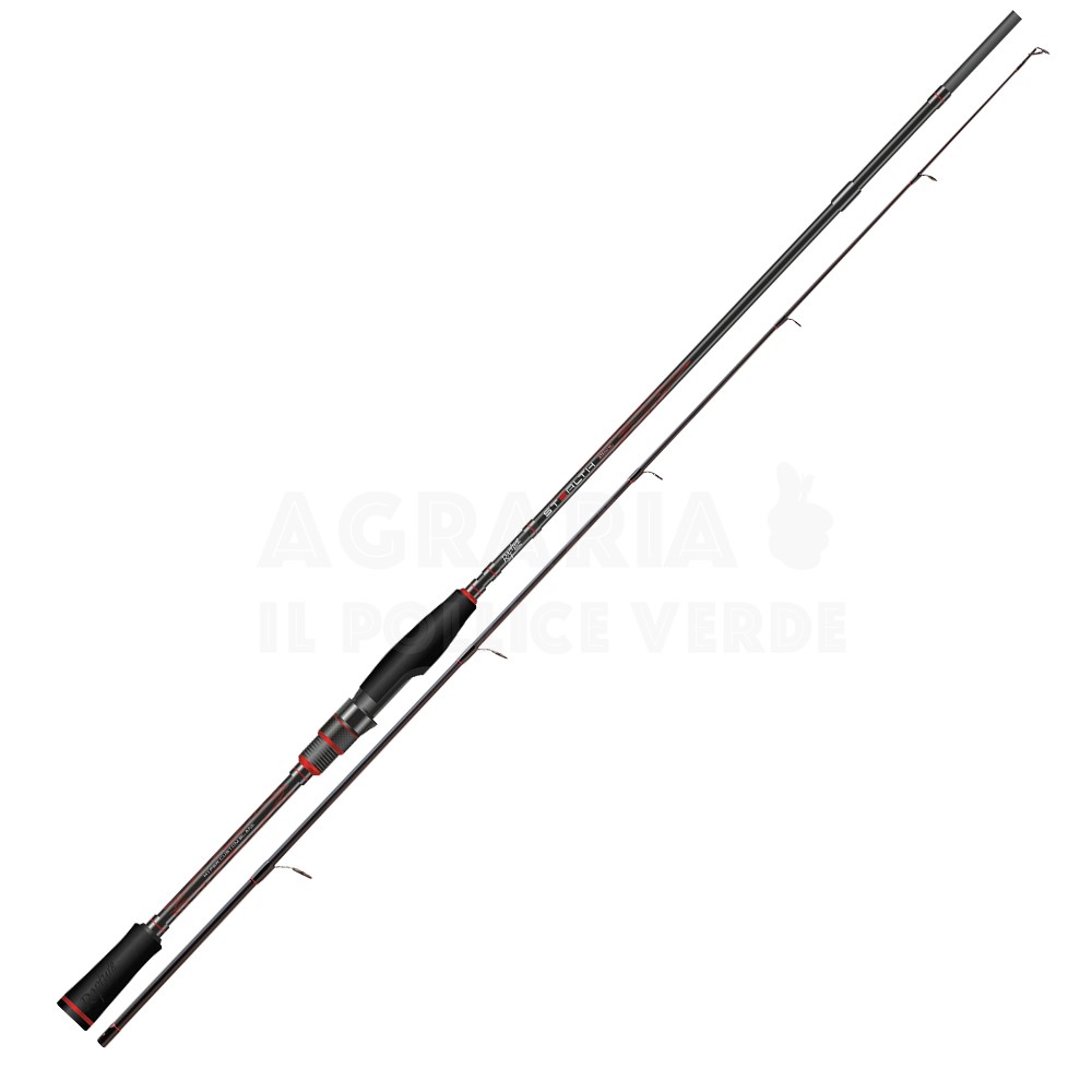 Fusto in carbonio SHR Alta Resistenza, con innesto spigot. Anelli SiC HD a gambo singolo con telaio a «V» adatti per l’utilizzo sia di monofilo sia di lenze trecciate.