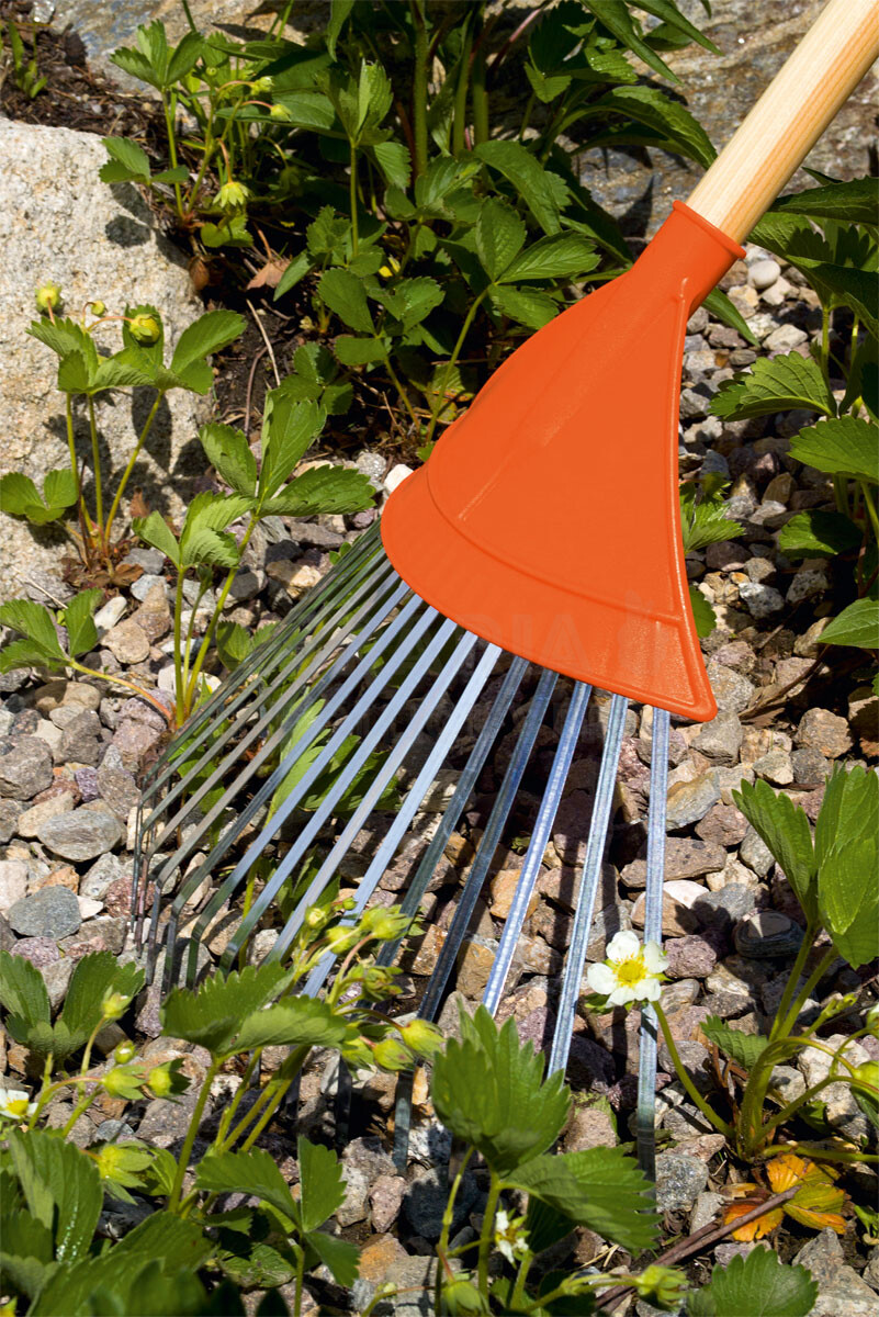 Rastrello per fogliame per raccogliere foglie, erba tagliata ed altri detriti. I denti flessibili danno maneggevolezza all’attrezzo per un lavoro efficace e veloce