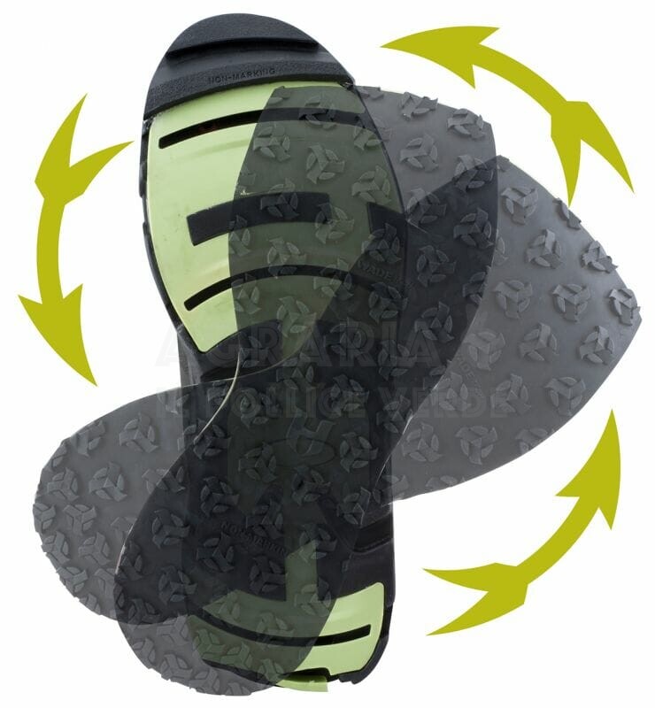 parte inferiore della scarpa che mantiene il sistema libero anche da detriti. Questi stivali possono essere utilizzati anche in acqua salata grazie ai materiali resistenti alla corrosione, e l’anello a