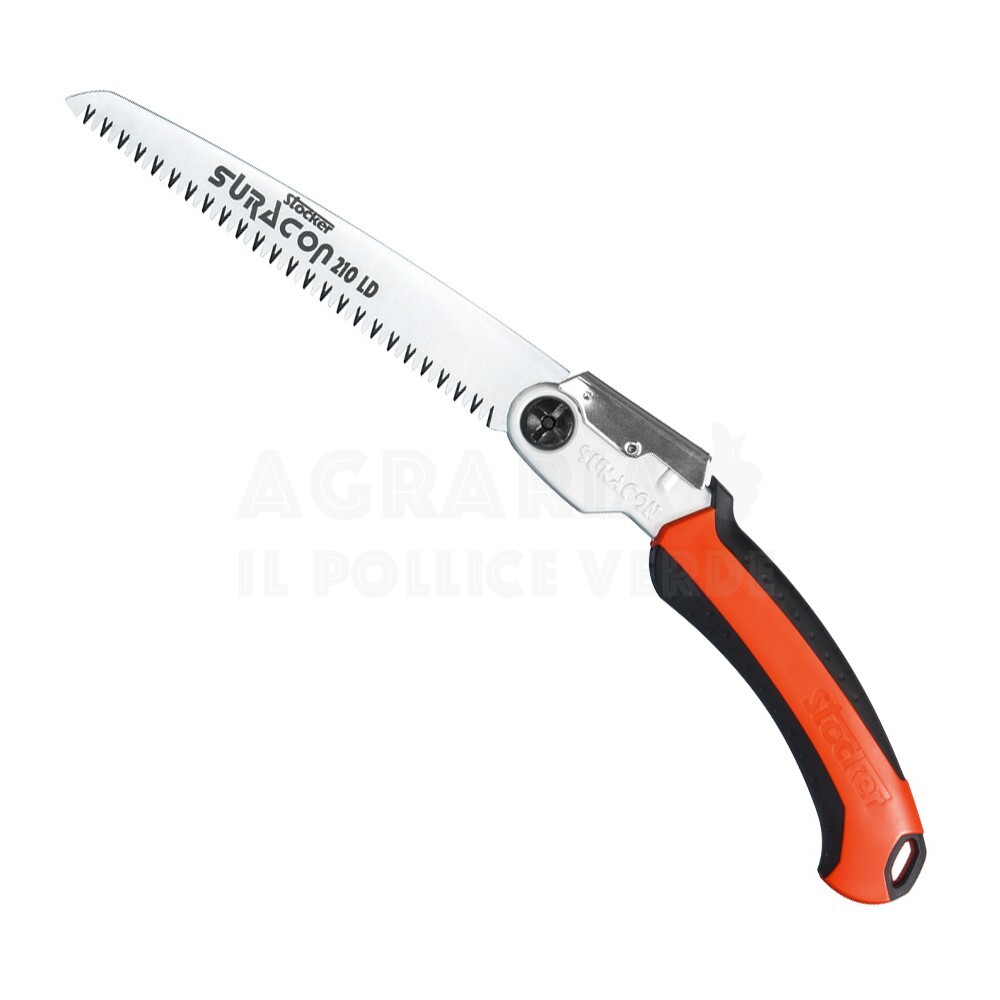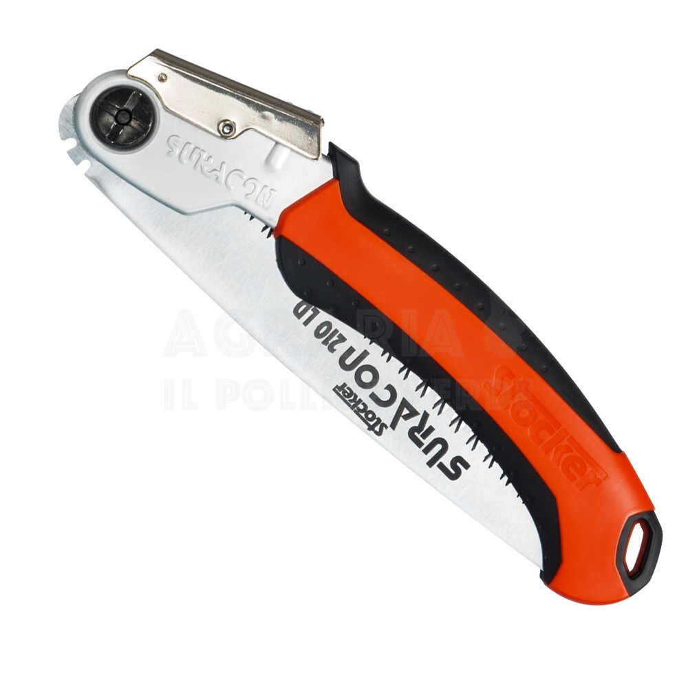 Seghetto pieghevole con lama dritta e chiusura automatica, per uso professionale, per tutti i lavori di potatura e giardinaggio, realizzato con materiali di alta qualità.