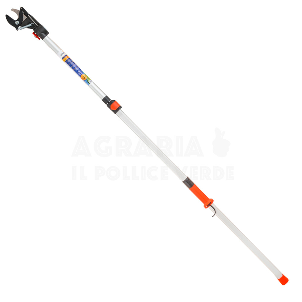 Addio fatica! Perfetta per potare alberi di grandi dimensioni come l’olivo. Consente di potare anche i rami a 4 metri di altezza con diametro di 35 mm. Grazie all’asta prolungabile, la potatura può essere effettuata in tutta sicurezza da terra, senza scala.