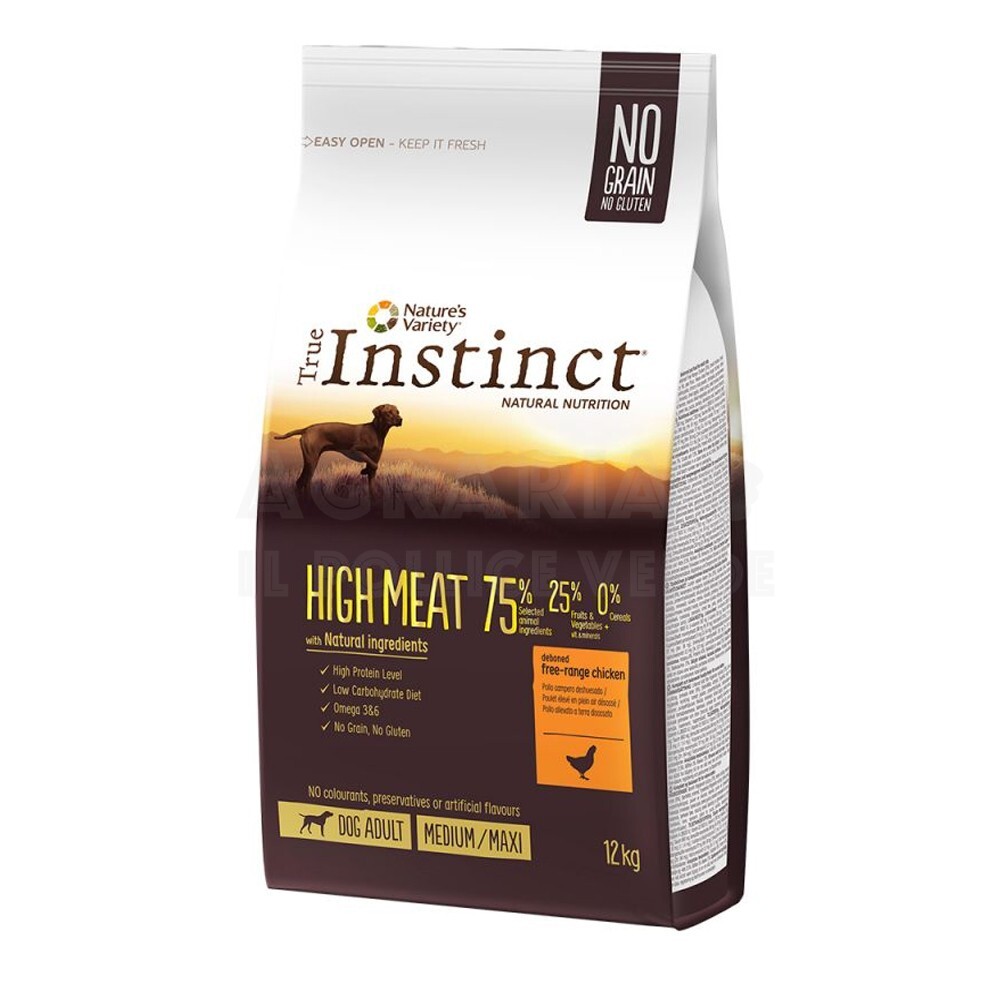 True Instinct™ HIGH MEAT è un alimento completo ed equilibrato, che si ispira all’alimentazione ancestrale dei cani, a base di carne o pesce disossati di prima qualità uniti a un’esclusiva selezione di frutta, verdura e sostanze di origine vegetale per fornire un’alimentazione istintiva, come previsto nella natura.