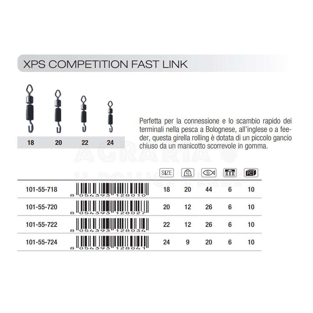 Perfetta per la connessione e lo scambio rapido dei terminali nella pesca a Bolognese, all’inglese o a feeder, questa girella rolling è dotata di un piccolo gancio chiuso da un manicotto scorrevole in gomma.